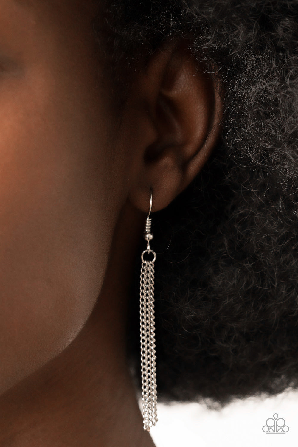 Crushed pieces of iridescent white and purple shell-like accents are encased in a glassy silver fitting at the bottom of a silver chain, resulting in a colorful pop of shimmer below the collar. Features an adjustable clasp closure