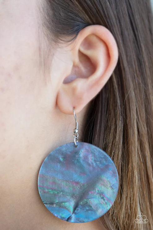 Brushed in a rainbow iridescence, a circular acrylic frame swings from the ear for an out of this world style. Earring attaches to a standard fishhook fitting. Color may vary.