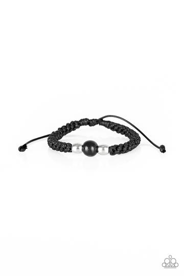 Shiny metallic and an earthy black wooden bead adorns the center of braided black cording for a seasonal look. Features an adjustable sliding knot closure.